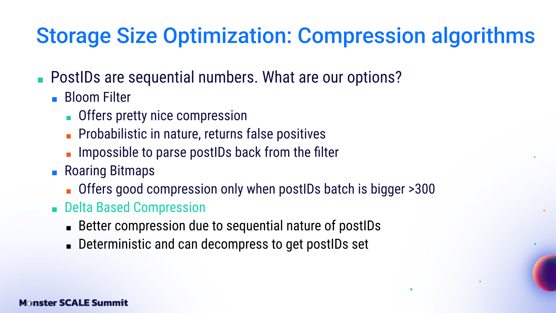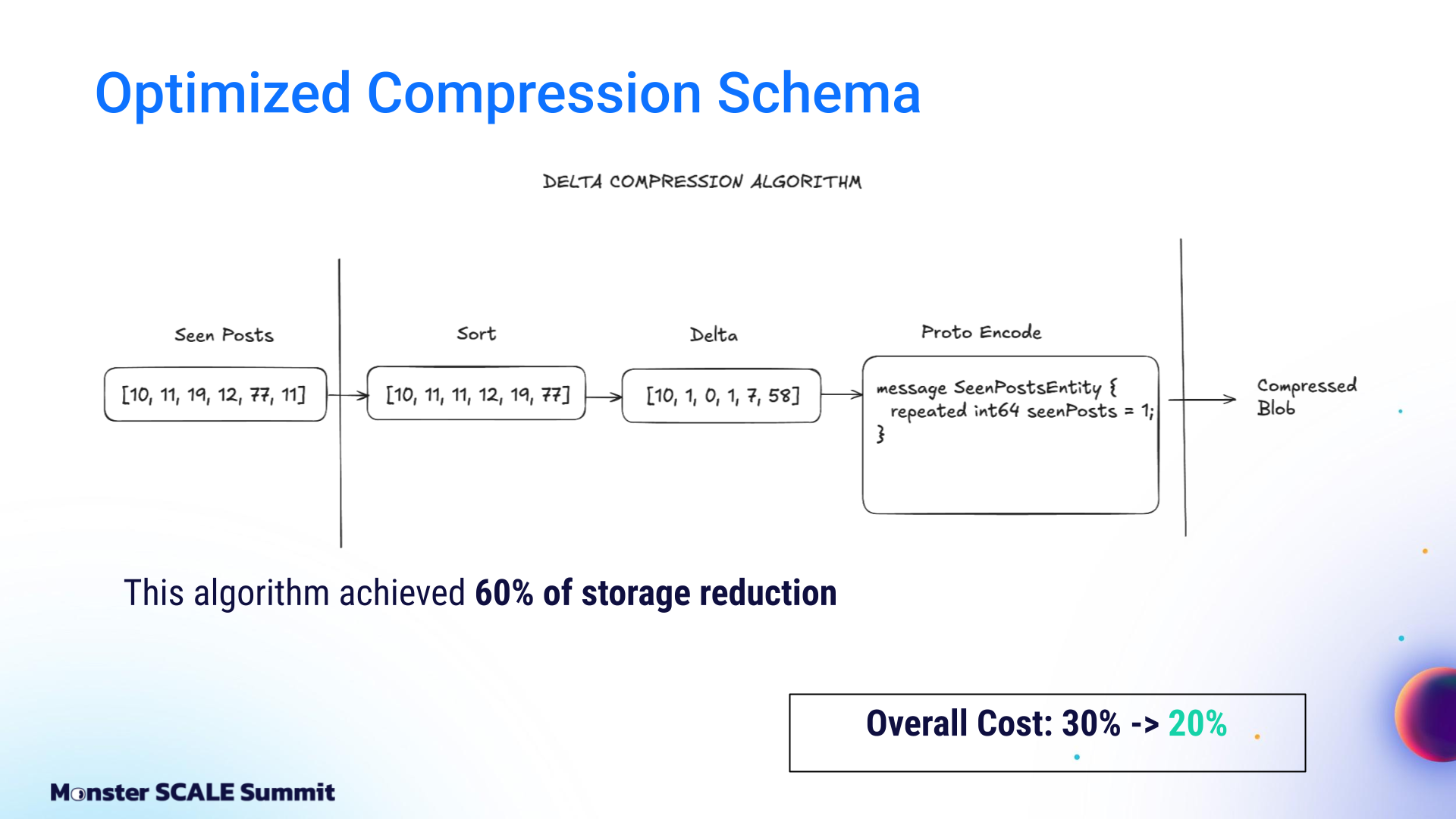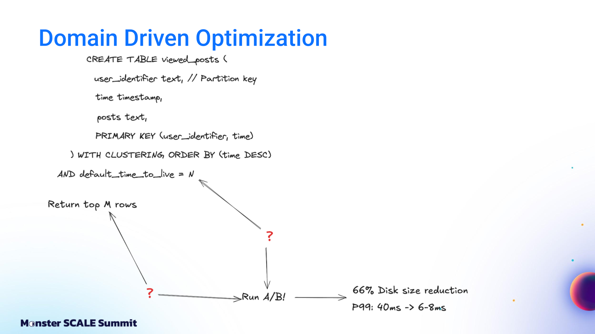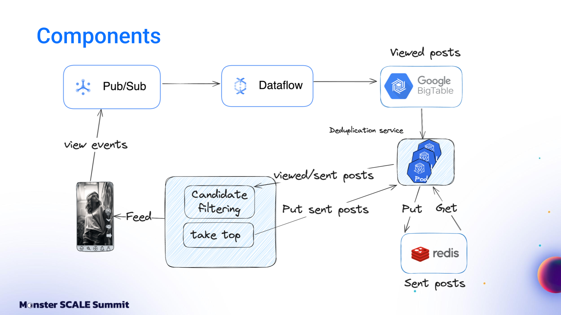 From managed Google Cloud services to ScyllaDB, Redpanda, Flink, and beyond The engineering team at ShareChat, India’s largest social media platform, decided it was time to take a hard look at the mounting costs of running their recommendation system. The content deduplication service at its core was built on Google Cloud’s managed stack: Bigtable, Dataflow, Pub/Sub. That foundation helped ShareChat get up and running rapidly. However, costs spiked as they scaled to 300 million users generating billions of daily interactions. And the 40 ms P99 latency was not ideal for customer-facing apps. If you’ve followed ScyllaDB for a while, you probably know that the ShareChat engineers never shy away from monster scale engineering challenges. For example: Pulling off a zero-downtime migration of massive clusters (65+ TB, over 1M ops.sec) Using Kafka Streams for real-time, windowed aggregation of massive engagement events while keeping ScyllaDB writes minimal and reads sub-millisecond Scaling their ScyllaDB-based feature store 1000X without scaling the database – and then making it 10X cheaper Spoiler: They pulled off yet another masterful optimization with their deduplication service (90% cost reduction while lowering P99 latency from 40 ms to 8 ms). And again, they generously shared their strategies and lessons learned with the community – this time at Monster Scale Summit 2025. Watch Andrei Manakov (Senior Staff Software Engineer at ShareChat) detail the step-by-step optimizations, or read the highlights below. Note: Monster Scale Summit is a free + virtual conference on extreme scale engineering, with a focus on data-intensive applications. Learn from leaders like antirez, creator of Redis; Camille Fournier, author of “The Manager’s Path” and “Platform Engineering”; Martin Kleppmann, author of “Designing Data-Intensive Applications” and more than 50 others, including engineers from Discord, Disney, Pinterest, Rivian, LinkedIn, and Freshworks. ShareChat will be delivering two talks this year. Register and join us March 11-12 for some lively chats. Background ShareChat is India’s largest social media platform, with more than 180 million monthly active users and 2.5 billion interactions per month. Its sister product, Moj, is a short-video app similar to TikTok. Moj has over 160 million monthly active users and 6 billion video plays daily. Both apps rely on a smart feed of personalized recommendations. Effective deduplication within that feed is critical for engagement. If users keep seeing the same items over and over again, they’re less likely to return. The deduplication service filters out content users have already seen before the ranking models ever score it. It’s a standard part of the feed pipeline: fetch candidates from vector databases, filter them, score and rank using ML models, then return the top results. The system tracks two distinct concepts: Sent posts and Viewed posts. Sent posts are delivered to the user’s device. They may or may not have been seen. Viewed posts are items that the user has actually seen. Why both? Viewed posts are tracked on user devices and sent to the backend periodically, passing through queues before being persisted in the database. This creates a delay between the time the event occurs and when it’s stored. That delay makes it possible to send duplicate posts in sequential feed requests. Sent posts solve this by being stored immediately before the response goes to the client. That prevents duplicates from sneaking into subsequent feed refreshes. So why not just use Sent posts? That would create a different problem: “In a feed response, we send multiple posts at once, but there’s no guarantee that the user will actually see all of them,” Andrei explained. “If we rely only on Sent posts, we might deduplicate relevant content that the user never saw…and that can negatively affect feed quality.” The Initial Architecture: Google Cloud, Bigtable, Dataflow, Pub/Sub + Redis The initial architecture was built entirely on Google Cloud. View events flowed into Google Pub/Sub. A Dataflow job aggregated these events per user over time windows and wrote batches into Bigtable. Sent posts lived in Redis as linked-list queues. A deduplication service (written in Go and running on Kubernetes) combined both data sources with feed logic and returned results to the client. It worked. But it was expensive, and latency was a suboptimal 40 milliseconds. Moving to Flink, ScyllaDB, and Redpanda The first optimization step was replacing Google’s managed services with specialized, efficiency-oriented alternatives. Andrei shared, “We replaced Google Pub/Sub with Redpanda, which is Kafka-compatible and more efficient. We replaced Google Bigtable with ScyllaDB, and Google Dataflow with Apache Flink. These changes alone brought costs down to about 60% of the original level.” Dataflow to Flink Dataflow was used for streaming jobs and aggregation events. The team enjoyed having a fully managed service with a simplified API that was nice for prototyping. But at scale, it grew costly. Moving to Apache Flink meant they had to run and maintain their own cluster. Still, it was worth it. They cut the cost of streaming jobs 93%. Bigtable to ScyllaDB On the database front, the team moved from Bigtable to ScyllaDB after comparing their tradeoffs, similarities, and differences. Andrei explained, “First of all, both databases are optimized for heavy write workload. Also, we are able to use a quite similar schema: partition by user ID, store all posts in a single column.” But there were key differences. Bigtable’s autoscaling was valuable given ShareChat’s traffic variability (nighttime traffic drops to less than 10% of peak). At that time, ScyllaDB did not support autoscaling, so ShareChat had to provision clusters for peak load and keep additional buffers for spikes. Bigtable also has advanced garbage collection rules that allow limits on r