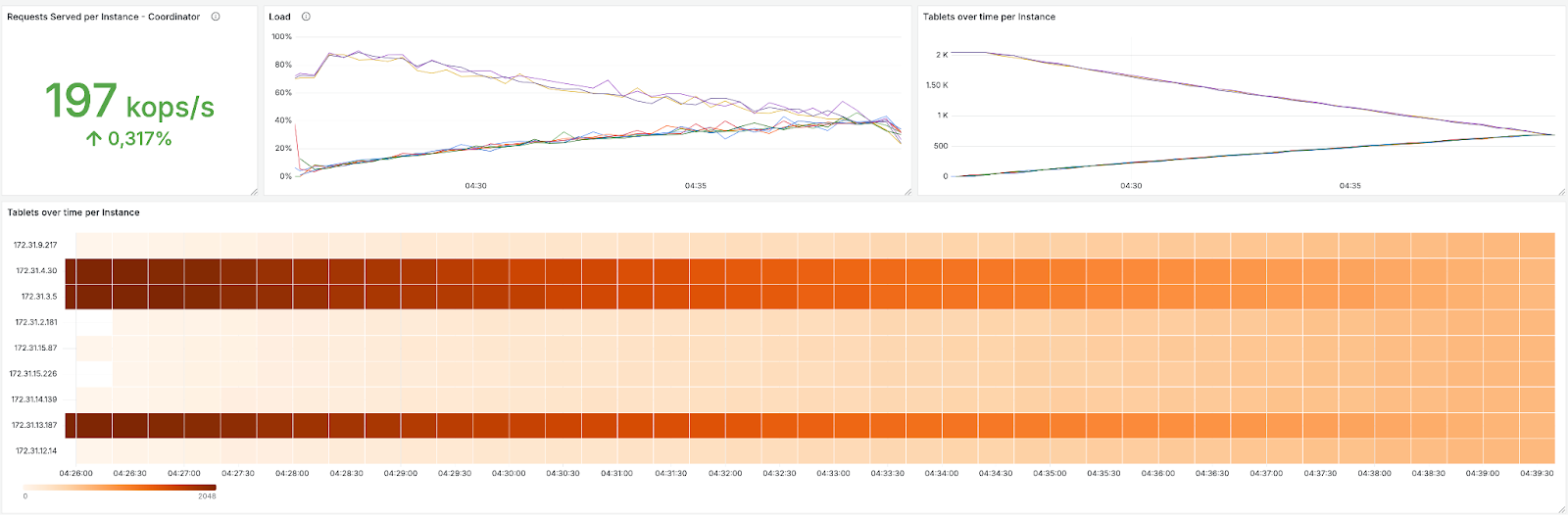 We increased traffic proportionally. After sustaining it for another 30 minutes, we bootstrapped 3 more nodes, bringing each cluster to a total of 9 nodes. Finally, we increased traffic one last time to ensure each database could sustain its anticipated traffic.